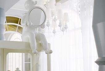 La locura y los detalles, un mundo fascinante, crea mobiliario extravagante quizá osamos a decir hortera pero junto a otras piezas configura un ambiente que lo envuelve formando un total. Al final sus proyectos son espacios neutros con piezas clave y detalles inimaginables, un estilo totalmente reconocible.