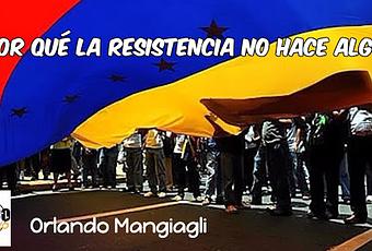 ¿Porque la resistencia no hace algo? Esa es una pregunta que cada quien debe responderse en forma individual al autoevaluarse y al hacerlo preguntarse también con absoluta sinceridad, ¿he sido yo cómplice silente de lo que hoy pasa? La sinceridad de esta respuesta puede ser brutal y devastadora.Orlando Mangiagli @mangiagliP. Asoc. Civil OUSIA - Director del Bloque DemocráticoVocero Frente Amplio Anticomunista