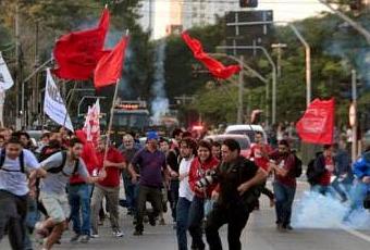 2) “Represión policial. La Policía Militarestá reprimiendo con mucha violencia las manifestaciones de estos días. En la primera protesta a la que asistí en Sao Paulo, había casi tanta policía como manifestantes y decenas de personas acabaron heridas (entre ellas una periodista de la CNN). ‘Yo sí saldría a la calle estos días, pero no lo hago por miedo a la Policía Militar’, me cuenta Bruna.