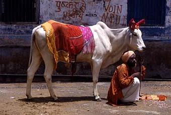 Símbolo de la fecundidad y la maternidad, las vacas son sagradas para los hindúes. Están protegidas por la ley y nadie osa hostigarlas, maltratarlas y mucho menos matarlas para aprovechar su carne. A muchos occidentales, esta sacralización les parece paradójica en un país en el que reinan la pobreza y el hambre.