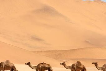 Dromedarios en medio del desierto.