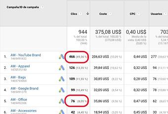 Uno de los errores más comunes es creer que el número de clics registrados por Google Ads tiene que coincidir con el número de sesiones o visitas registrado por Google Analytics.
