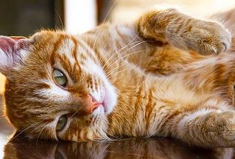 Cuando su gato se encuentra en su espalda con una panza expuesta, significa que confía en ti por completo, y que él se siente relajado en su casa.