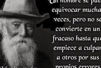 Los seres humanos por naturaleza cometemos errores, es natural es la forma en que mejor aprendemos cualquier lección, por lo tanto no somos fracasados por cometer errores, de hecho seriamos mas fracasados si no los cometiéramos pues quien nunca ha cometido un error es porque jamas ha intentado hacer algo, este seria un gran error, pero hay un error igual de grave el culpar a los demás de nuestros errores.Los seres humanos somos unos grandes fracasados cuando no tenemos el coraje de asumir nuestros errores y en lugar de eso culpamos a otros: sea a un dios, a la naturaleza, a un animal u otros seres humanos; Esto es una irresponsabilidad y una mentira que ni siquiera nosotros mismos nos creemos, en el fondo sabemos que fuimos culpables de nuestro error y que solo tratamos de no afrontar las consecuencias del mismo, por ende culpar a otros por nuestros errores es un símbolo de nuestra cobardía y mientras tengamos la esta mala costumbre nunca aprenderemos de nuestros errores y seremos unos grandísimos fracasados.Si aquel que siempre culpa a otros de sus errores siempre se condena al fracaso, ¿que pasa en una sociedad que vive culpando a otros de sus errores? esta sociedad también sera un completo fracaso, esto se ve por ejemplo en las sociedades que destruyen sus ecosistemas y después culpan a un dios o a la naturaleza por un desastre que ellos mismo causaron, o en gobiernos populistas que no saben administrar y culpan a gobiernos extranjeros por sus errores.Un buen gobierno asume sus errores y los corrige, un país modelo a seguir es el que enmienda sus errores unido, no en el que sus ciudadanos se culpan los unos a los otros, una persona capaz de asumir sus errores vale mucho mas que quien solo trata de ocultarlos; El negar nuestros errores es algo que ha corrompido desde siempre a la humanidad, por eso las buenas intenciones fracasan, las ideologías defraudan, los lideres fracasan y la gente jamas progresa; El día que un profesional trata de ocultar sus errores y no corregirlos, dela de ser profesional, el día en que una ideología por mas elocuente que sea se use erróneamente pierde toda credibilidad si no se enmienda dicho error, el día que una buena intención se tope con un error que no se asuma y repare esa buena intención llevara a un infierno