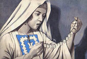 Así que estas monedas eran cosidas en hileras como una diadema en el velo nupcial el día de la boda, y luego usadas como ornamento en el velo como señal de estar casadas. Era algo así como un “anillo de matrimonio” actual. No sólo tenía un valor económico, sino también un valor sentimental. Era un símbolo público de honor, ya que el juego completo de monedas representaba a una esposa fiel. Si se hallaba a una mujer infiel el esposo podía quitarle algunas monedas (o incluso todas) para su desgracia. Y si faltaba una, el esposo podía llevarse una impresión equivocada, incluso reaccionar con ira (“Usos y Costumbres de tierras bíblicas”, Fred Hartley Wight).