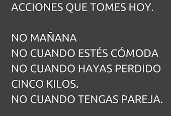 Recuerda la imagen de este artículo y elimina los “cuando—entonces”. Empieza ahora con lo que tienes y puedes y después vas cambiando lo que necesites. Como dice la cita: “Tu futuro depende de las acciones que tomes hoy.”