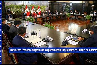 Presidente Sagasti se reúne en Palacio con los gobernadores regionales.