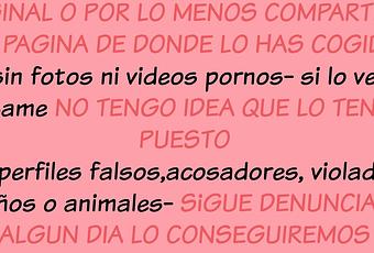 . Porque estoy harta de ver videos y fotos pornos, de violaciones de chicas, de violaciones de niños, YO NO VEO NI COMPARTO ESAS COSAS SI LO VES AVISAME. Porque estoy Cansada de que me manden mensajes, quieres ligar, mandame una foto, yo no utilizo las redes sociales para ligar, ni para cotillear, ni para nada de eso, ESTOY CASADA, BASTA DE MANDAR MENSAJES SEXUALES, DE PROMOCION DE CUALQUIER COSA, - BLOQUEAR Y DENUNCIAR ESOS MENSAJES.