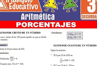 Aquí hallaras GRATUITAMENTE el siguiente material sobre Porcentajes preparado especialmente para los estudiantes de Tercero de Secundaria. Este contenido se desarrolla en el curso de ARITMÉTICA y te lo compartiremos GRATIS en formato PDF.