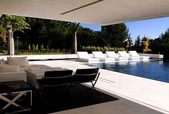 Este escultural porche cuenta con el diferentes colecciones de mobiliario diseñado por A-cero para Vondom, perfecto para ambientes exteriores.