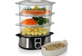 - Vaporera EléctricaEs un utensilio más caro pero se pueden encontrar de diferentes precios en el mercado, funciona conectado a la corriente y puedes cocer diferentes alimentos por separado, ya que algunas nos permiten tener tres niveles de alto.