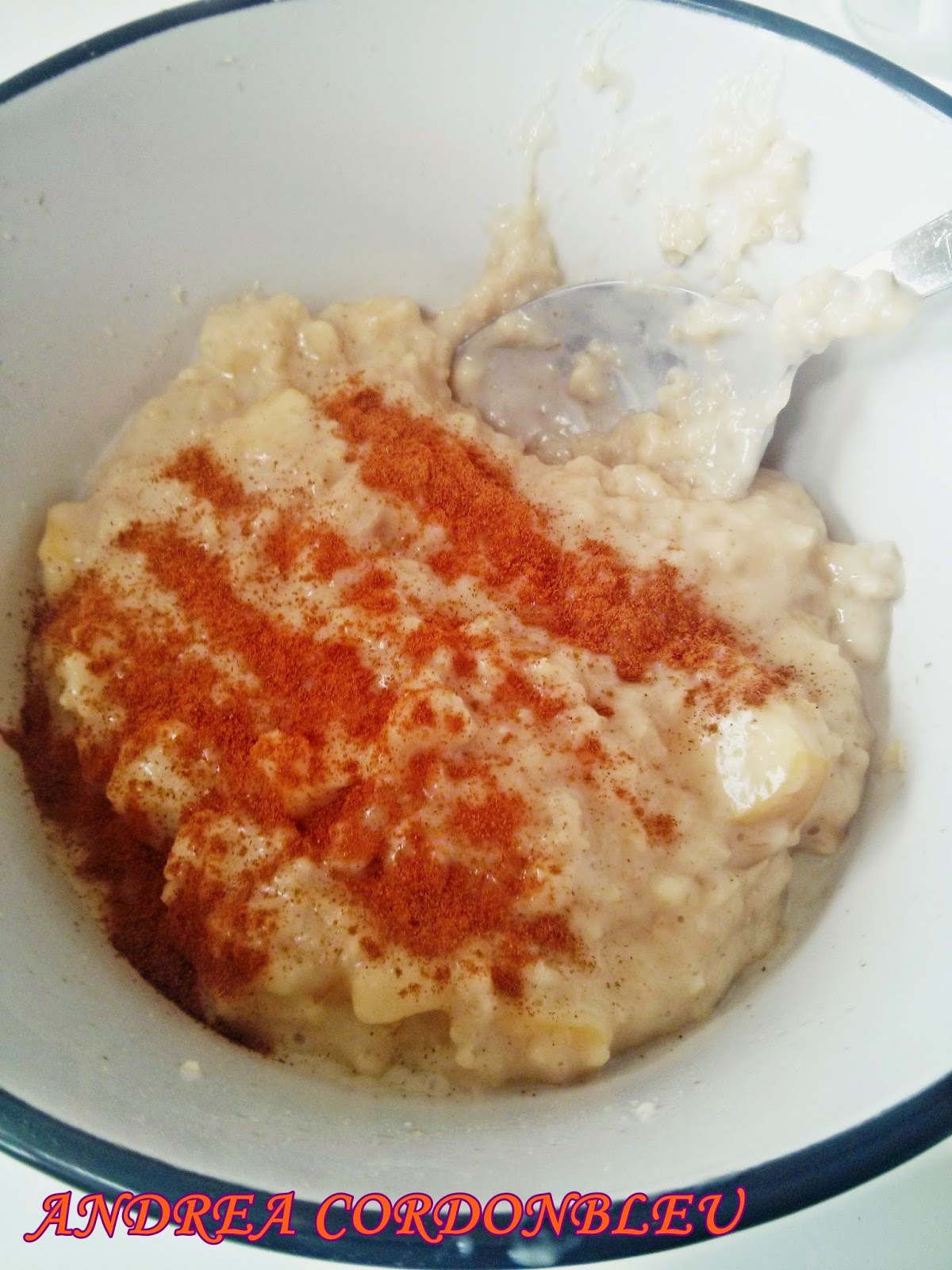 Una vez está todo cocinado coloca en un cuenco de desayuno. Se puede aderezar con canela o vainilla. Se puede acompañar con zumo de naranja. Rico desayuno, equilibrado, sano y bueno para nuestro cuerpo.