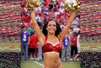Laura Eilers en el campo de juego con los Jefes de Kansas City (Imagen: ScienceCheerleader.com)