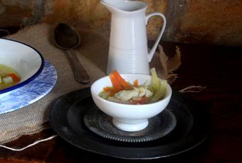 En el caso de la tapa o aperitivo he puesto el caldo en una jarra, las verduras en el fondo del cuenco, en mi caso en una taza de ribeiro, viertes un poco de caldo y colocas el bacalao encima. Espero que os guste la receta y cualquiera de las dos presentaciones. Bsss