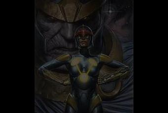 En la portada podemos ver tanto a una miembro de los Nova Corps como al Titán Loco Thanos, dos de los principales protagonistas de la serie.