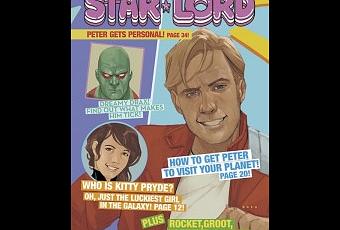 En la portada, podemos ver a Star-Lord posando como si fuese una súper estrella en una de las clásicas revistas de celebridades de los años 80.
