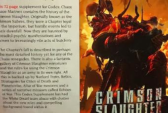 Bien,bien mis pajaritos se han ganado el alpiste con creces.La portada del sub-codex Crimson Slaughter se confirma con esta imagen(Gracias a Nicco Sacco y a Skie),así como los contenidos que os adelante ayer.Pero esta filtración no es la única.También se confirma lo que la menos para mi es lo mas llamativo de la salida de este sub-codex,junto al hecho de que comparte solo con Legión Negra(snif) el dudoso honor de tener un sub-codex propio y no los demás.Y es el hecho de que sale a la vez las dos ediciones físicas y la digital,no como en los casos anteriores que salió antes lo digital y meses mas tarde lo físico: