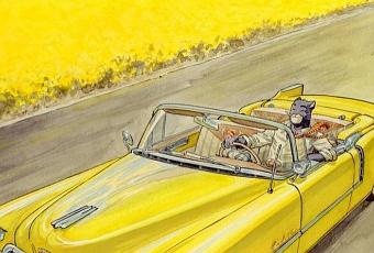 De momento tenemos su portada con Blacksad en un estupendo Cadillac amarillo, una página interior a lápiz y un montón de hojas dibujadas que podemos ver en Blacksadmania.com