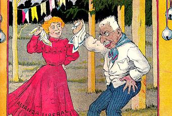 Del año 1908 es esta portada del magazine político-caricaturesco Corre-Vuela. En portada el presidente Pedro Montt, quien es un gran conocido dentro del mundo de la caricatura y la historieta chilena por la paliza que esbirros del poder propinaron al dibujante de origen español Santiago Pulgar, y al editor de la publicación “La Comedia Humana”, en donde una caricatura suya le pareció en extremo humillante al presidente, su esposa y a un gallardo político, y de la cual -a pesar de haber sido detenidos y de disponer de testigos- los culpables directos simplemente desaparecieron desde la comisaría. El número adjunto corresponde al 38 del 16 de septiembre.