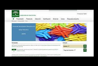 Tras las recientes Instrucciones de 22 de junio de 2015, de la Dirección General de Participación y Equidad, por las que se establece el protocolo de detección, identificación y organización de la respuesta educativo del alumnado con NEAE, la Consejería de Educación ha desarrollado un conjunto de actuaciones que han tenido como propósito difundir e informar del mismo a toda la comunidad educativa andaluza.Otra de las novedades que ofrece la Consejería de Educación es la puesta en marcha de un nuevo portal dedicado a esta temática en el que podremos obtener documentación e informes-modelo sobre los diversos apartados de los que se compone el protocolo: prevención, detección, identificación, dictamen, censo y respuesta educativa.