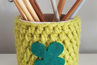 Este es otro de los modelos de portalápices en color verde lima con un trebol que fué destinado para la Asociación Nueva Vida, para ayudar a los animales que por esta Asociación pasan.