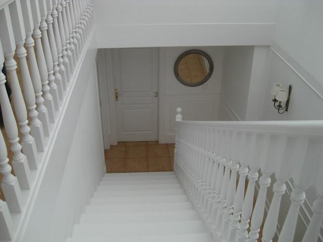 El blanco es el color dominante, en las maderas, escalera, paredes...todo transmite, calma, relax, limpieza..