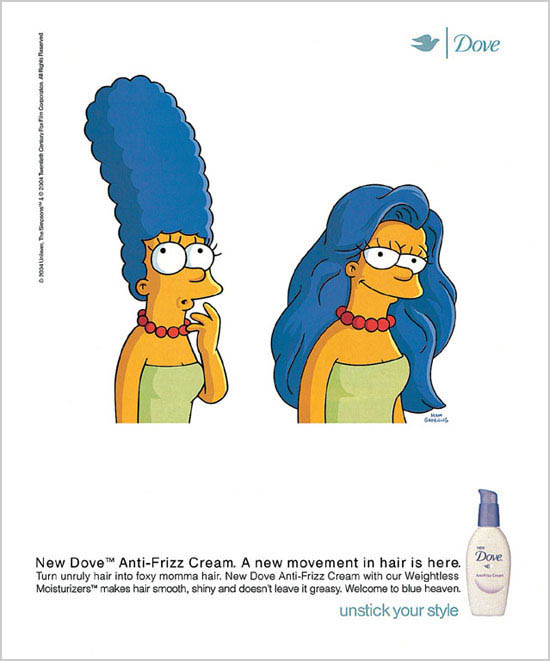 La campaña de Dove Shampoo protagonizado por las chicas de Hanna-Barbera , Vilma Picapiedra, Jane Jetson, Velma Dinkley y también Marge Simpson.