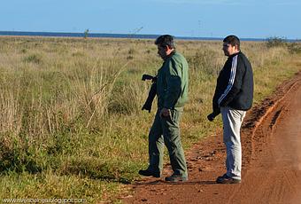 Willy y Javier fotografiando al Yetapá de collar entre Pellegrini y Rincón del socorro al costado de la Ruta 40.