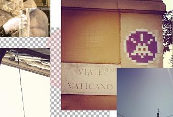 Estas son algunas de las fotografías que tome con el móvil de las cosas que más me llamaron la atención: los árboles serpenteantes que junto con los cables del alumbrado invaden la ciudad, algún que otro invasor más, los escaparates de Via Condotti, como se mezclan en los vidrios de esas tiendas el reflejo de una cuidad color naranja con los maniquies…
