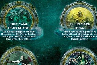 Por lo que cuenta, que no es mucho pero bastante interesante, son Elfos creados por Teclis, que creo vida como lo hicieron los otros dioses...solo que le salieron "rana" (Perdón por el chiste, no pude evitarlo), saliendo cambiados física y mentalmente. Algunos, directamente mutados, como se ha podido ver. Son fuerzas del Orden, pero como las Hijas de Khaine, no son precisamente "buenos", chocando con cualquiera que se cruce en su camino o atacando directamente a otras facciones..