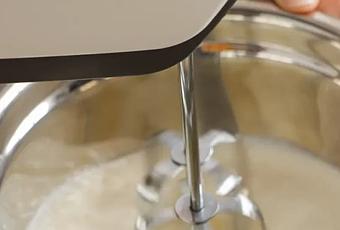 - En un Bowl colocar la Crema y batir intensamente hasta montar a “medio punto”, esto quiere decir que debemos incorporar aire con el batido hasta que la crema deje de ser líquida pero sin llegar a montarse por completo.