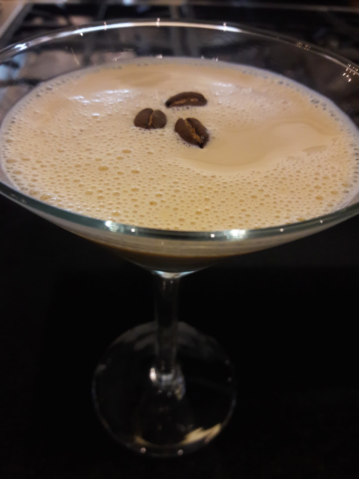 - Servir en una copa Martini previamente enfriada y decorar con tres granos de café tostado.