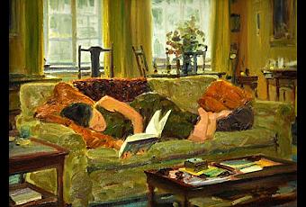 Aunque menciona también las diversas formas de leer tumbado en la cama (o en la hierba del parque, a pesar de las palomas aviesas esta chica muestra una afición notable por leer al aire libre), sospecho que su investigación en este terreno no ha ahondado demasiado. Pues para mí -todo esto es muy personal, es preciso reconocerlo- la postura perfecta es reclinada (pero no echada del todo) en la cama, en un sillón o en el sofá. Al contrario de lo que afirman los expertos, encuentro que esa relajación del cuerpo permite que mi mente vuele mucho más fácilmente a la historia que tengo entre manos y favorece mi inmersión en la lectura. Dejo de pensar en que tengo brazos o piernas, en mi riego sanguíneo y en si guardo la distancia ideal (por supuesto, eso requiere que no haya palomas merodeando por ahí y mirando de refilón) para perderme en el libro. Que es de lo que, en definitiva, se trata.