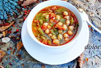 En esta ocasión se trata de una variante de lo que se entiende por potaje añadiendo más caldo y también un choricillo un pelín picante que le da vidilla a esos vegetales.