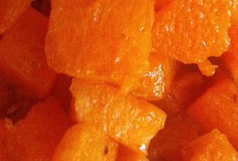 - Quita la cáscara de la calabaza y córtala en trozos. Deja que se haga a fuego suave, en una sarten con un chorrito de aceite de aceite de oliva y una pizca de sal, durante 5-10 minutos, depende del tamaño de los trozo de calabaza.