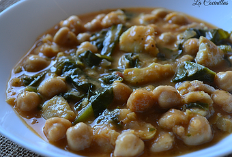 Este plato que os traigo hoy es todo un clásico de la semana santa, "el potaje de vigilia o cuaresma" el cual incluye dos de los ingredientes mas consumidos en esas fechas como son el bacalao y las espinacas, es un potaje que se consume habitualmente los viernes de cuaresma en España debido a la prohibición religiosa de comer carne durante ese periodo. Es un plato completo ya que tanto los garbanzos como el bacalao aportan la proteína necesaria.Ya se que aun quedan dos meses para la semana santa pero es un potaje que suelo prepararlo a menudo sobre todo en invierno ya que en casa gusta mucho y además cuando lo hago aprovecho para hacer una gran cantidad y luego lo congelo en fiambreras individuales y cuando nos apetece lo voy sacando y esta aun mas rico jejeje, es muy sencillito de elaborar así que hay os dejo la receta espero que os guste. INGREDIENTES (para 6 personas ):- 1/2 kilo de garbanzos ( puestos en remojo la noche anterior ).- 1 kilo de espinacas.- 200g de bacalao desalado ( yo lo use congelado de mercadona ).- 2 cebollas pequeñas.- 6 cucharadas soperas de aceite de oliva.- 1 hoja de laurel.- 1/2 cabeza de ajo ( partida por la mitad ).- 1 diente de ajo.- 1 cucharadita rasa de pimentón dulce.- perejil.- 1 tomate grande ( yo use de lata entero ).- 1 cucharada sopera de harina. - sal. ELABORACION:La noche antes de hacer el potaje pondremos los garbanzos en remojo. Cuando se vaya a hacer el potaje se lavan muy bien los garbanzos y se ponen en una olla con agua caliente ( pero no hirviendo ), con la 1/2 cabeza de ajo entera, la hoja de laurel y una cebolla pelada y entera. si vamos a usar olla rápida dejaremos cocer unos 20 minutos, si no es así coceremos los garbanzos 2 horas y media a fuego medio.Cuando estén tiernos los garbanzos incorporamos el bacalao en trozos no muy pequeños ( que si no se deshacen ).Lavamos muy bien las espinacas, quitamos los tallos y las echamos en la olla, dejamos cocer unos 8 minutos.
