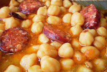 En ése papel de plato único, los potajes y pucheros con legumbres, donde quizás los garbanzos tenían especial protagonismo, eran los más socorridos, con grandes ventajas: llenaban, alimentaban y se podían comer de un día para otro. El popular y humilde garbanzo, resulta que dentro de su correoso pellejo se refugian unos excipientes de gran valor, no sólo alimentan, sino que su ingestión produce sensación de bienestar y calma; hace pocos años, los científicos descubrieron que los garbanzos producen serotonina, que es la hormona causante de la felicidad (el aminoácido del garbanzo que produce la segregación de la serotonina, es el mismo que se emplea para producir antidepresivos).