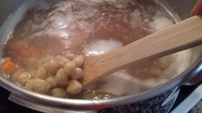 La víspera pondremos los gasbanzos en remojo con agua fría.