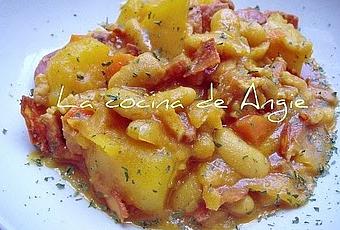 Esta receta la tenía copia hace tiempo de algún foro de cocina y me llamó la atención lo del chorrito de ketchup...., la verdad es que sorprende y el resultado es muy bueno. Aparte de ser un plato que se prepara en un momento. A ver qué os parece! Se la voy a dedicar a Magdala13 por el premio que me otorgó el otro día. Gracias!- Poner un chorrito de aceite en una olla y dorar ½ cebolla picada con una chispa de sal; añadir 1 diente de ajo picadito y 2 zanahorias en rodajas finas. Añadir chorizo en rodajas y cuando suelte su grasa añadir un hueso de jamón y una hoja de laurel. Sofreír y añadir 2 ó 3 patatas peladas y chascadas. Hacer unos minutos, añadir un buen chorro de ketchup y un bote de habichuelas cocidas y enjuagadas; cubrir con agua caliente, probar de sal, añadir una chispa de colorante y dejar cocer a fuego hasta que las patatas estén tiernas