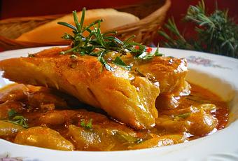 No hace mucho viendo el programa Aquí la Tierra en TVE1, (del que por cierto somos fieles seguidores en casa, tanto por la temática variada del mismo como por la simpatía y buen hacer de su presentador Jacob Petrus y del resto de reporteros), se hicieron eco de un plato que se solía elaborar en los crudos inviernos pirenáicos y más concretamente en la zona andorrana, y que básicamente, echaba mano de ingredientes recolectados en otoño antes de la llegada de las primeras nieves junto al bacalao seco y unas buenas fabes como ingredientes estrellas.Una particularidad de este plato consistía en aprovechar la resina de las piñas piñoneras, a las cuáles se las cubría previamente en azúcar durante algún tiempo para extraerles todo el jugo. Es el toque montañés que hace a este plato poseedor de un sabor consistente y penetrante. Es obvio, el alcance de la imaginación para tomar prestados elementos básicos del entorno y aprovecharlos en un marco gastronómico como es el caso que nos ocupa.