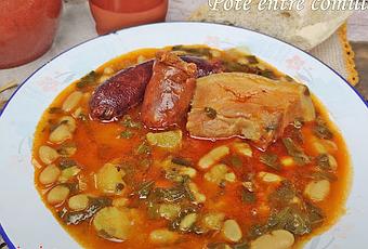 Consiste en una mezcla de fabes, patatas y berza con su compango correspondiente.