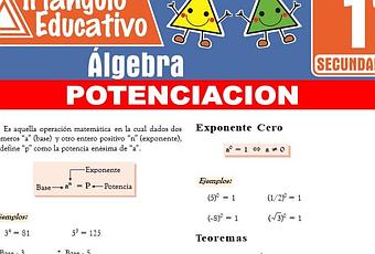 Aquí obtendrás GRATUITAMENTE el siguiente material sobre Potenciación preparado especialmente para los estudiantes de Primero de Secundaria. Este contenido se desarrolla en el curso de ALGEBRA y te lo compartiremos GRATIS en formato PDF.