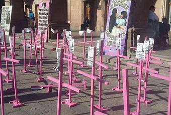 Frente a Palacio Municipal se realizó un performance en el cual se colocaron varias cruces rosas en memoria de las víctimas de violencia de género y la acostumbrada impunidad que las ha re victimizado.