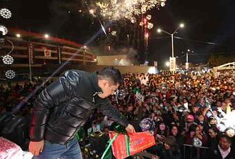 “Un gusto traer la magia de esta temporada a cada rincón de la zona metropolitana de San Luis Potosí», expresó el secretario, quien, junto con Leonor Noyola Cervantes, alcaldesa de Soledad de Graciano Sánchez, Nohemí Proal, secretaría Técnica; Juan Manuel Navarro, diputado federal; los legisladores locales Patricia Aradillas y José Luis Fernández y delegados que repartieron entre los asistentes cobertores, juguetes y bicicletas.