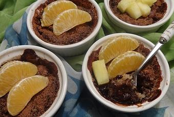 4. Place the ramekins in a deep pan; pour boiling water halfway up the ramekins and bake in preheated oven at 350 ° F (180 ° C) for 20-25 minutes. Allow the puddings to cool, then sprinkle them with cocoa powder or icing sugar.