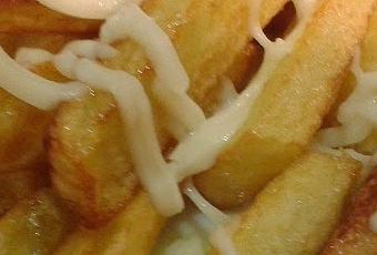 Es una montaña de patatas fritas con salsa de carne y espolvoreada con queso fresco, yo lo hago con mozzarella.