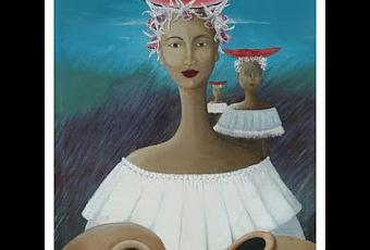 Mujeres cosechando sandía. Óleo sobre tela 28"x40"
