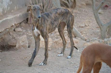 Nos dan el aviso de lo que esta sucediendo una pareja, las únicas personas que se pararon a darle agua e intentar reanimarla y que han estado con ella hasta que hemos podido llegar. Prada tiene una de sus patas delanteras totalmente hinchada, no sabemos si ha sido atropellada o golpeada, pero creemos que es una fractura y muy reciente.