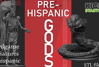 El artista mexicano Juan Antonio Lerma Estrada (Su pagina en Artstation es mefedet.artstation.com), de Infinite Besatiary ha lanzado una campaña de mecenazgo en la plataforma de financiación Kickstarter llamada Prehispanic Gods - Stl board game Miniatures Mayan, Aztec & other Mezo American Gods. Como su nombre indica, es una campaña para sacar archivos STL de figuras (Y creo,sino he entendido mal, que también figuras físicas directamente), con escala  52 mm de dioses, monstruos, héroes y escenografía relacionada con las antiguas culturas Mesoamericanas: Aztecas, Mayas, Totonacas, Toltecas,Olmecas,Zapotecas,...