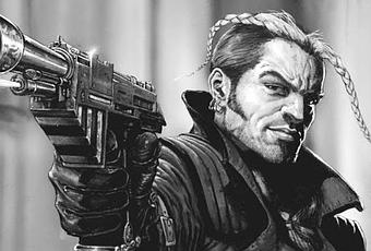 Jericho es un cazarrecompensas, uno de los hijos de Lord Gerontius Helmawr, gobernador planetario de Necromunda, y que nació de una noble llamada Heleana Jericho que en realidad era una Inquisidora del Ordo Xenos (Jena Orechiel, que es ademas personaje con figura del juego descatalogado Inquisitor) y que en las novelas y los comics tiene una media hermana, llamada Merelda (Que le regalo un cibermastin que le perteneció, pero que no le han incluido. Una pena)
